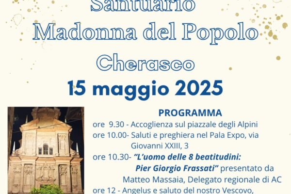 Il Settore Adulti dell’Azione Cattolica diocesana propone l’annuale pellegrinaggio diocesano di primavera, che quest’anno sarà al santuario della Madonna del Popolo a Cherasco. Iscrizioni entro […]