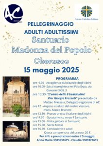 Il Settore Adulti dell’Azione Cattolica diocesana propone l’annuale pellegrinaggio diocesano di primavera, che quest’anno sarà al santuario della Madonna del Popolo a Cherasco. Iscrizioni entro